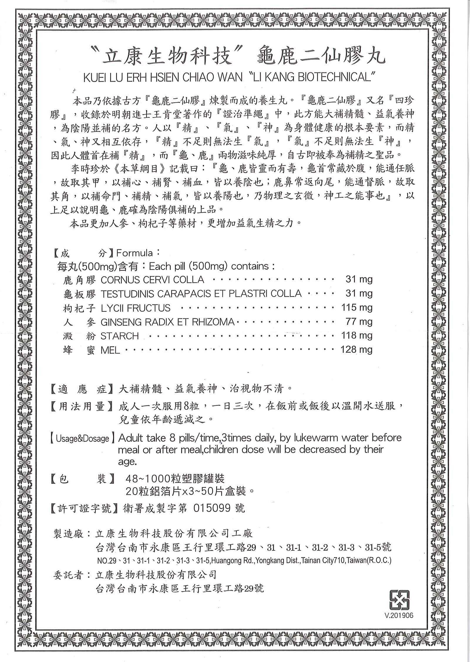 KUEI LU ERH HSIEN CHIAO WAN“LI KANG BIOTECHNICAL”