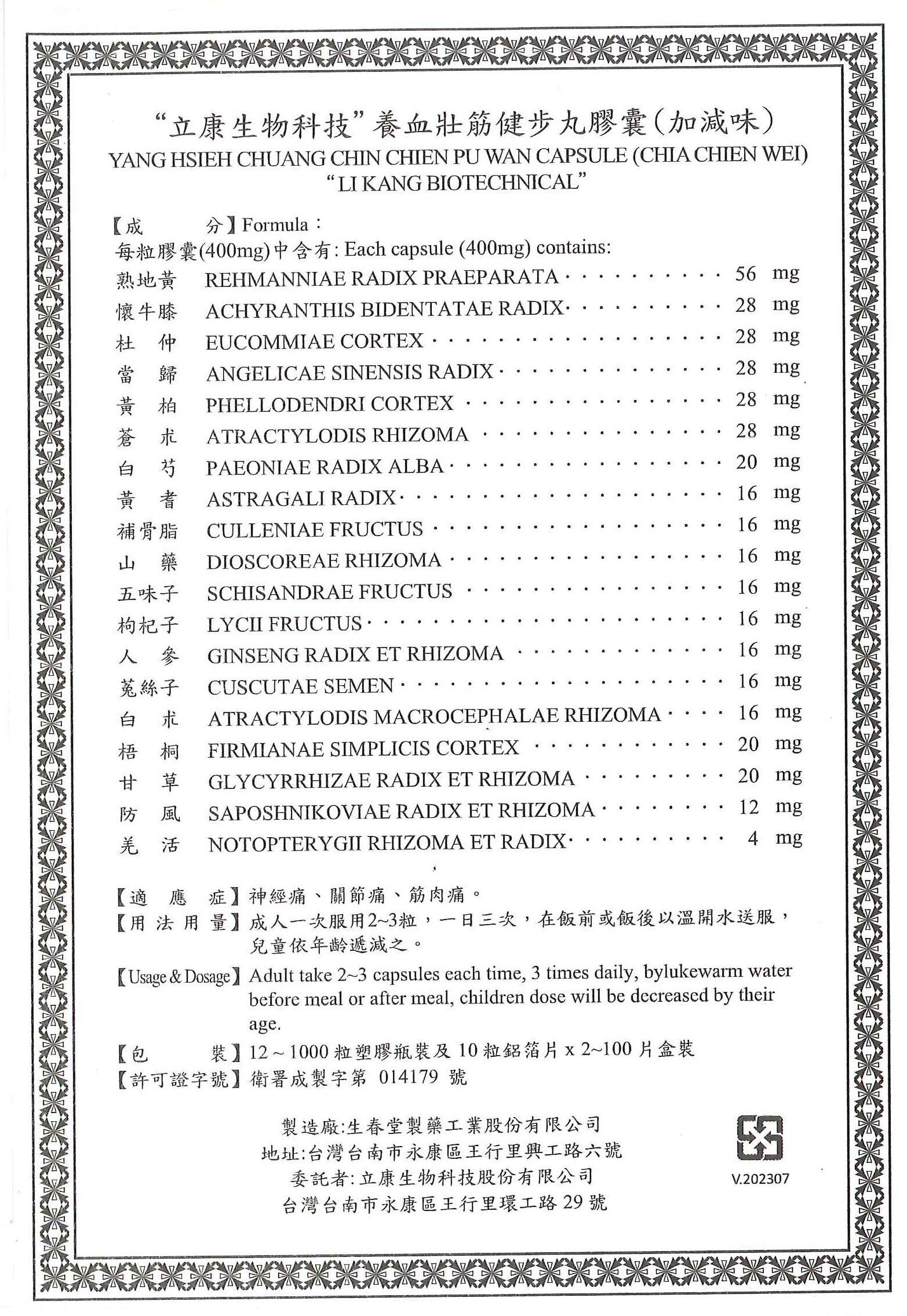 YANG HSIEH CHUANG CHIN CHIEN PU WAN CAPSULE〝LI KANG BIOTECHNICAL〞(CHIA CHIEN WEI)