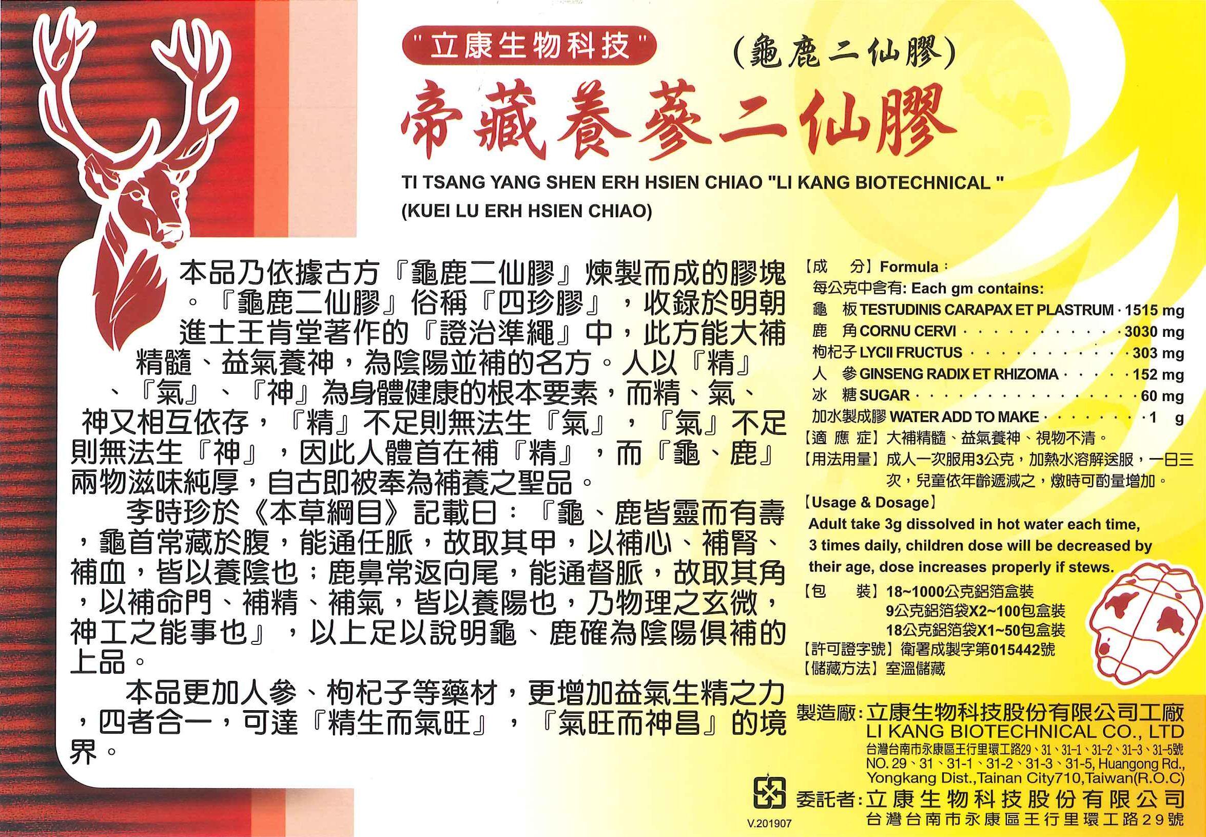 TI TSANG YANG SHEN ERH HSIEN CHIAO“LI KANG BIOTECHNICAL”(KUEI LU ERH HSIEN CHIAO)